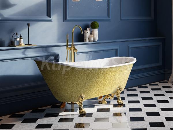 Besco OLAYA Glam voľne stojaca oválna akrylátová retro vaňa 160x68 cm,Zlatá,nožičky Zlaté