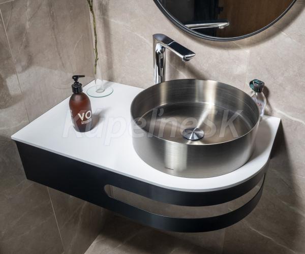 Sapho PULSE rohový stolík s umývadlom 755x455 mm, brúsená nerez, ľavý