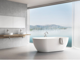 Neobmedzujte sa. Relaxujte. Pozvoľne oblé krivky voľne stojacej vane Freedom O navodzujú v kúpeľni upokojujúcu atmosféru a príjemne objímajú telo. V bielom vyhotovení.