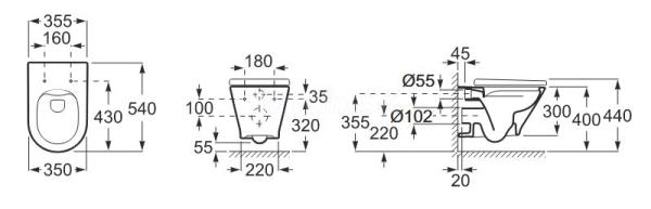 >>  WC-Bidety-dosky-Pisoár  >>  WC závesné  >>  Roca GAP ROUND Závesný klozet 35,5x54 cmasedátko Slim Duroplast Biela