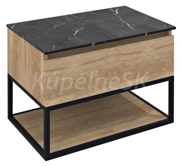 Sapho SKARA umývadlová skrinka 70x50x45cm, čierna mat/dub alabama