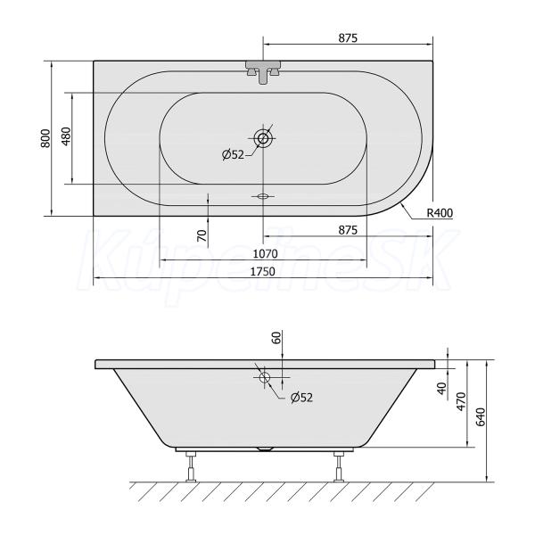 >>  Vane + príslušenstvo  >>  Akrylátové-Rohové asymetrické vane  >>  Polysan VIVA L asymetrická vaňa 175x80x47cm, čierna matná