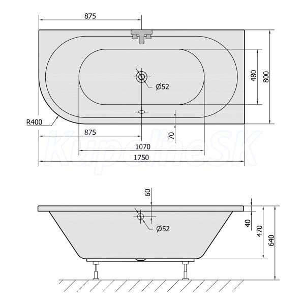 Polysan VIVA R asymetrická vaňa 175x80x47cm, čierna matná