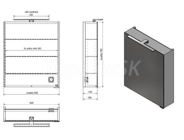 ZnačkaSAPHO SériaMIRRÓ GALÉRKY 3D modelÁNO Rozmer60x70x16 cm Šírka600. mm Výška700. mm Hĺ