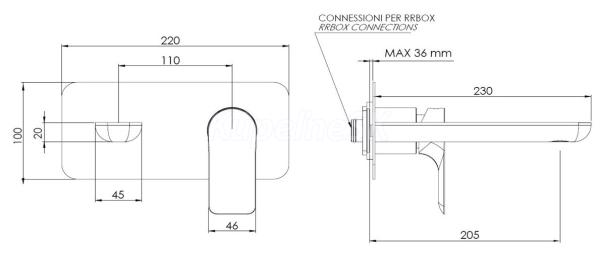 Táto podomietková umývadlová batéria ARNO 15LKB07 z ponuky spoločnosti HOPA je určená na kombináciu so vstavaným boxom. Nielen že podomietkové batérie skvele vyzerajú. Nemajú toľko záhybov a sú vzdialené od umývadla, nevyžadujú teda toľko čistenia . Výtokové ramienko je umiestnené vedľa pákového ovládania má dĺžku 23 cm . Batéria sa umiestňuje horizontálne a dodáva sa bez boxu.