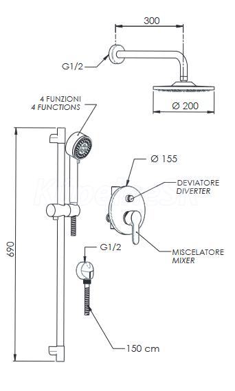 Hopa PIRA 09S01EC20 podomietkový sprchový set podomiet.bat.ahl.sprcha ruč.sprcha Chróm