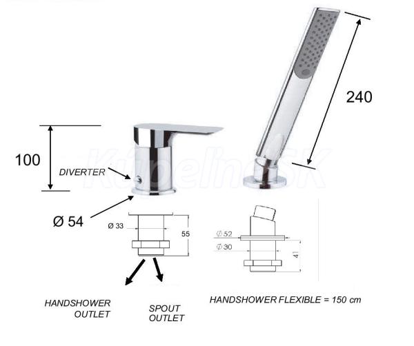 Netradičná batéria do okraja vane s dvoma otvormi. Vaňová dvojotvorová batéria ARNO 27 z ponuky spoločnosti HOPA. Batéria sa skladá z pákového ovládača a sprchovej hlavice. Tá je vrátane sprchovej hadice v dĺžke 120 cm . A je ukrytá v okraji vane.