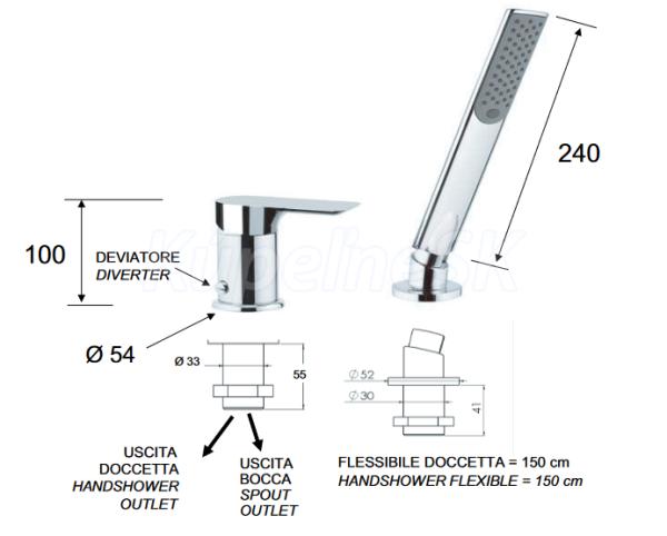 - S príslušenstvom: sprcha so 120 cm dlhou hadicou, upevňovacia sada