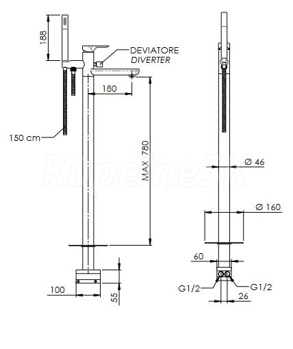 Stojanková vaňová batéria ARNO 08 s výškou 95 cm je určená na inštaláciu do podlahy a oceníte ju najmä ak máte voľne stojacu vaňu. Stojanková vaňová batéria pre moderné kúpeľne.