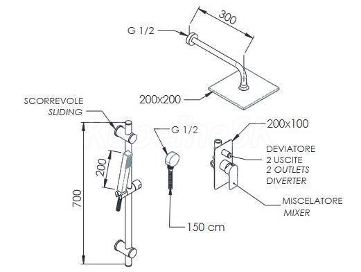 Jedinečný podomietkový set s príslušenstvom . Kompletné riešenie pre váš sprchovací kút. Set obsahuje podomietkovú batériu, hlavovú sprchu 20 x 20 cm s držiakom, vývod zo steny s držiakom, ručnú sprchu a hadicu.