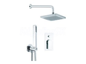 Jedinečný podomietkový set s príslušenstvom . Kompletné riešenie pre váš sprchovací kút. Set obsahuje podomietkovú batériu, hlavovú sprchu 20 x 20 cm s držiakom, vývod zo steny s držiakom, ručnú sprchu a hadicu.