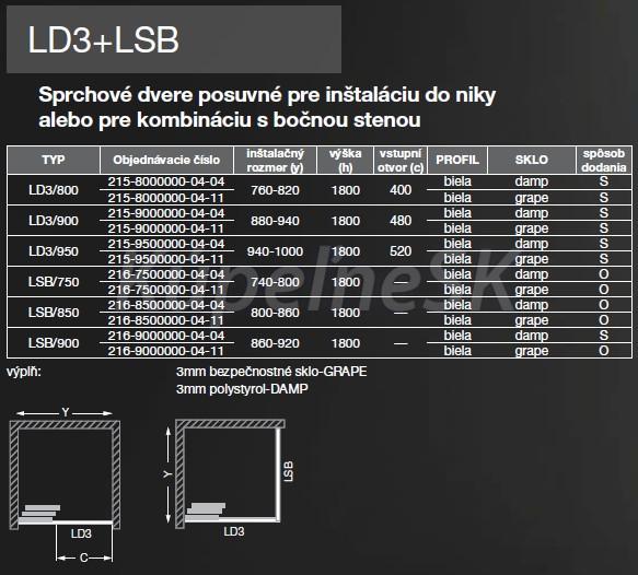 Samostatné posuvné sprchové dvere Sanipro LD3 80x180cm, biely profil, výplň 3mm bezpečnostné sklo s motívom grepu, určené na montáž do niky alebo na kombináciu s pevnou bočnou stenou LSB.
