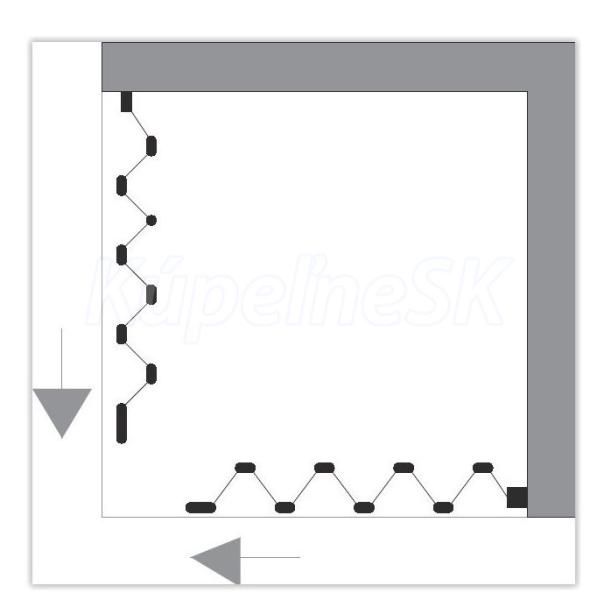 - štvorcová zástena so zatváraním do rohu (stredu)