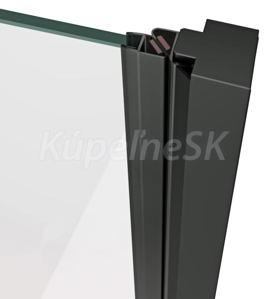 Dvojdielne sprchové dvere Cool! v čiernom vyhotovení a s výplňou z číreho skla s ochrannou vrstvou Ravak AntiCalc. Pántový systém otvárania. Otočiteľný výrobok pre ľavý aj pravý variant.