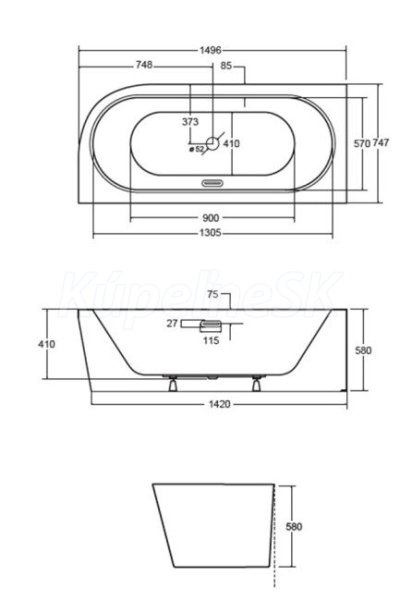 Rozmer voľne stojacej vane: