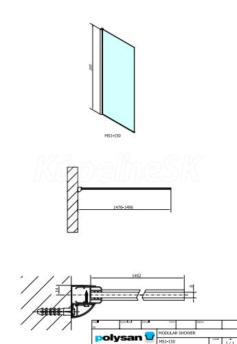 Polysan MODULAR SHOWER Walk-in stena na inštaláciu na múr, 1500 mm