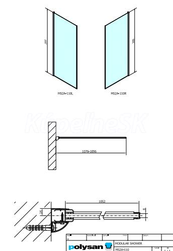 Polysan MODULAR SHOWER Walk-in stena na inšt. na múr, pre pripojenie príd. panelu, 1100 mm