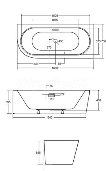 - 170 × 75 cm, objem 250 l