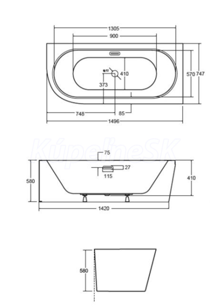 Rozmer voľne stojacej vane: