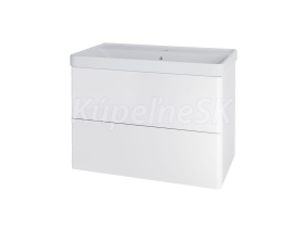 Siena, kúpeľňová skrinka s keramickým umývadlom 810x608x475 mm, spodná, 2 zásuvky, push-open systém, biela lesk.