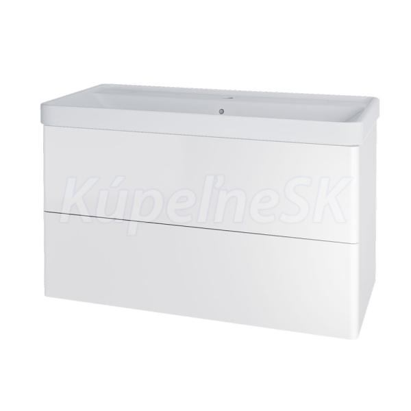 Siena, kúpeľňová skrinka s keramickým umývadlom 1010x618x475 mm, spodná, 2 zásuvky, push-open systém, biela lesk.