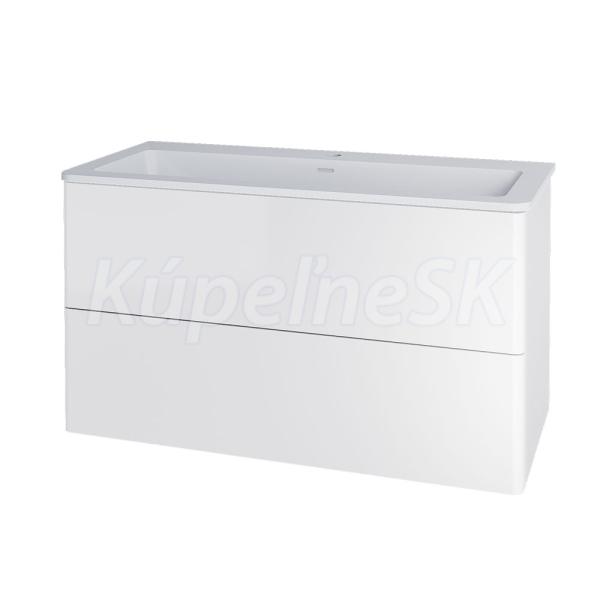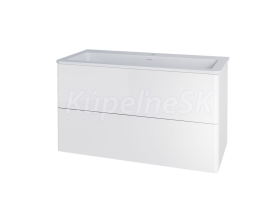 Siena, kúpeľňová skrinka s umývadlom z liateho mramoru, 1010x563x465 mm, spodná, 2 zásuvky, push-open systém, biela lesk.