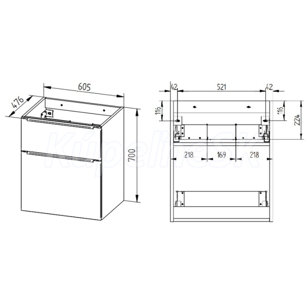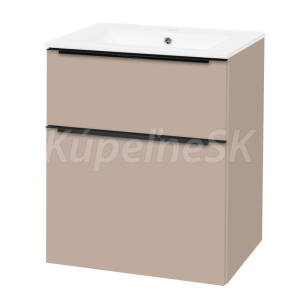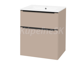 Mailo, kúpeľňová skrinka s keramickým umývadlom, 610x720x476 mm, spodná, šedý kameň, mat, 2 zásuvky, čierne madlo.