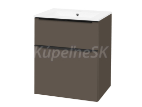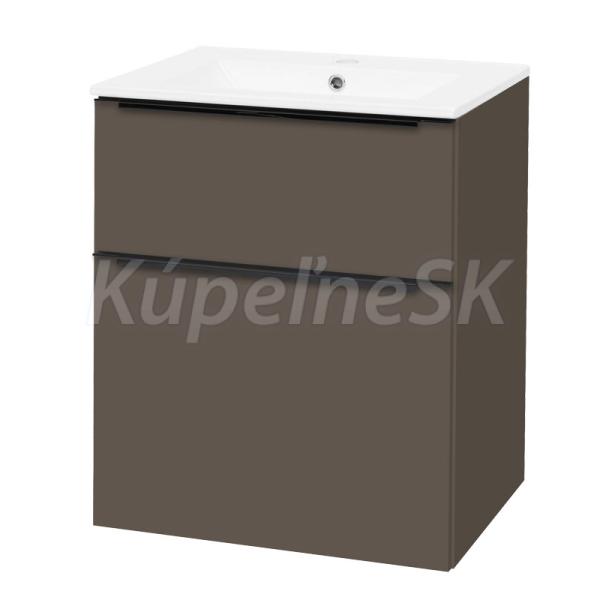 Mailo, kúpeľňová skrinka s keramickým umývadlom, 610x720x476 mm, spodná, šedá láva, mat, 2 zásuvky, čierne madlo.