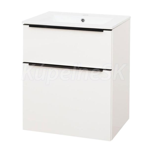 Mereo Mailo, kúpeľňová skrinka s keramickým umývadlom 61 cm, biela, čierne madlo CN510B