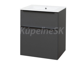 Mailo, kúpeľňová skrinka s keramickým umývadlom, 610x720x476 mm, spodná, antracit, 2 zásuvky, čierne madlo.