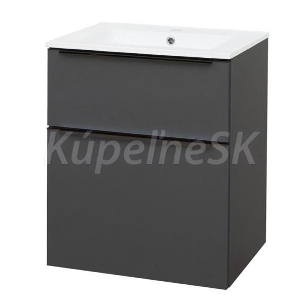 Mereo Mailo, kúpeľňová skrinka s keramickým umývadlom 61 cm, antracit, čierne madlo CN530B
