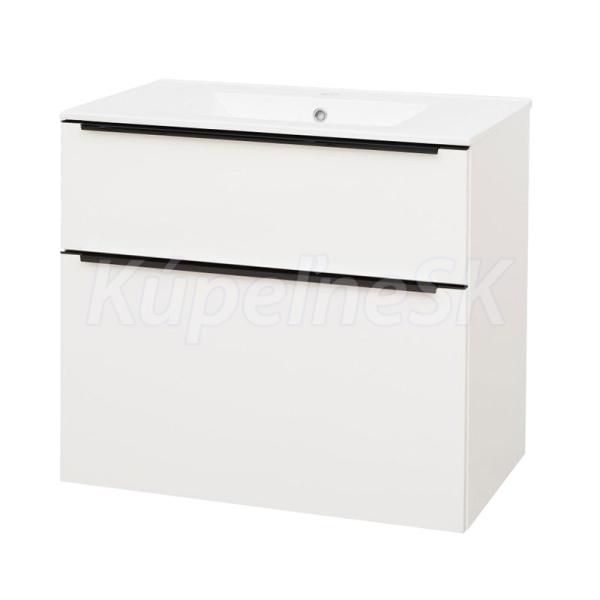 Mereo Mailo, kúpeľňová skrinka s keramickým umývadlom 81 cm, biela mat, čierne madlo CN541