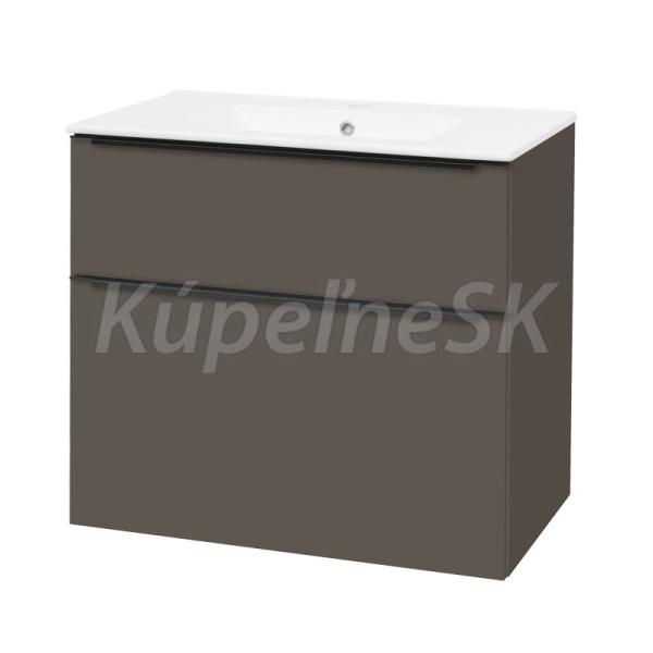 Mailo, kúpeľňová skrinka s keramickým umývadlom, 810x720x476 mm, spodná, šedá láva, mat, 2 zásuvky, čierne madlo.