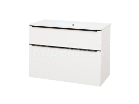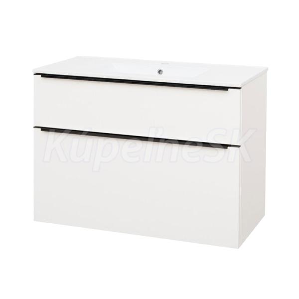 Mailo, kúpeľňová skrinka s keramickým umývadlom, 1010x720x476 mm, spodná, biela lesk, 2 zásuvky, čierne madlo.