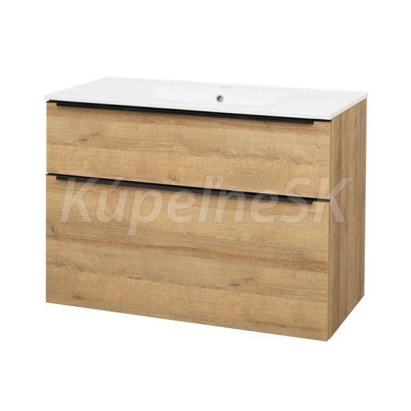 Mereo Mailo, kúpeľňová skrinka s keramickým umývadlom 101 cm, dub Riviera, čierne madlo