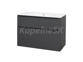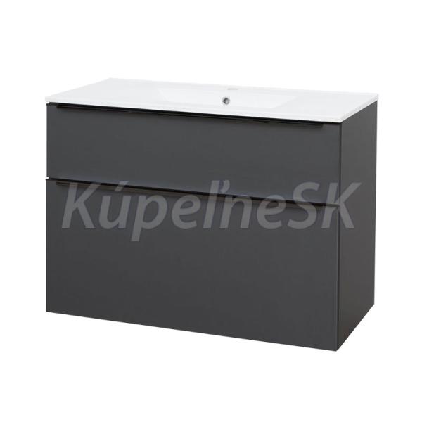 Mailo, kúpeľňová skrinka s keramickým umývadlom, 1010x720x476 mm, spodná, antracit, 2 zásuvky, čierne madlo.