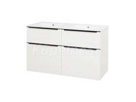 Mailo, kúpeľňová skrinka s keramickým umývadlom, 1210x720x476 mm, spodná, biela lesk, 4 zásuvky, čierne madlo.