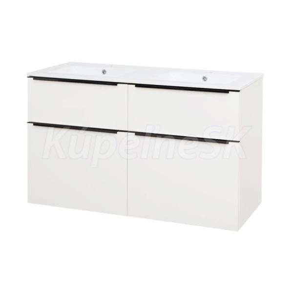 Mereo Mailo, kúpeľňová skrinka s keramickým umývadlom 121 cm, biela, čierne madlo