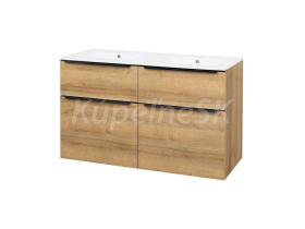 Mailo, kúpeľňová skrinka s keramickým umývadlom 1210x720x476 mm, spodná, dub Riviera, 4 zásuvky, čierne madlo.