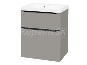 Mailo, kúpeľňová skrinka s umývadlom z liateho mramoru, 610x750x476 mm, spodná, šedá mat mat, 2 zásuvky, čierne madlo.