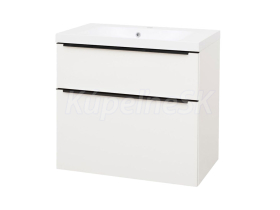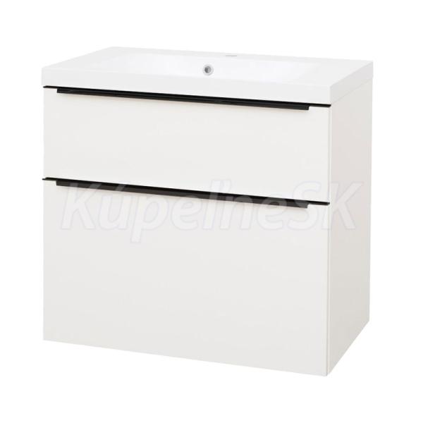 Mailo, kúpeľňová skrinka s umývadlom z liateho mramoru, 810x750x476 mm, spodná, biela mat, 2 zásuvky, čierne madlo.