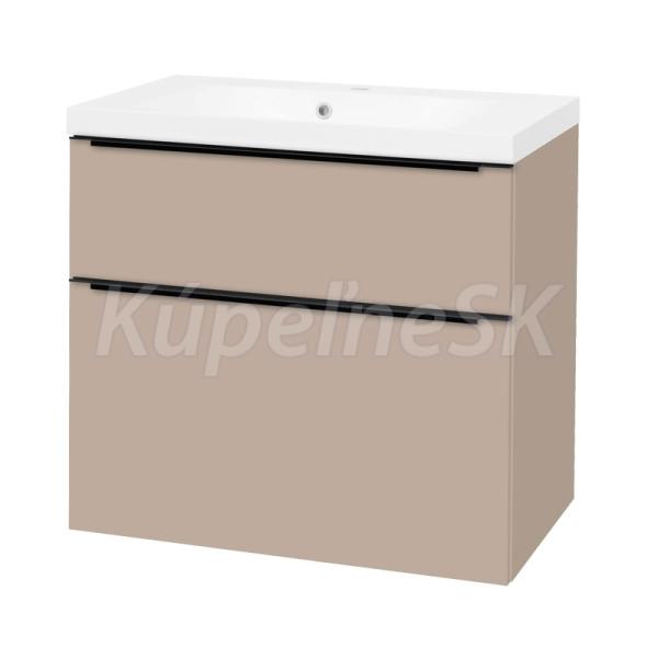 Mailo, kúpeľňová skrinka s umývadlom z liateho mramoru, 810x750x476 mm, spodná, šedý kameň, mat, 2 zásuvky, čierne madlo.