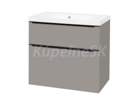Mailo, kúpeľňová skrinka s umývadlom z liateho mramoru, 810x750x476 mm, spodná, šedá mat mat, 2 zásuvky, čierne madlo.
