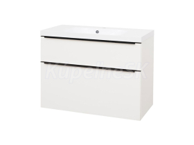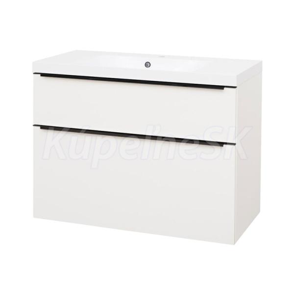Mailo, kúpeľňová skrinka s umývadlom z liateho mramoru, 1010x750x476 mm, spodná, biela lesk, 2 zásuvky, čierne madlo.