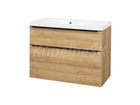 Mailo, kúpeľňová skrinka s umývadlom z liateho mramoru, 1010x750x476 mm, spodná, dub Riviera, 2 zásuvky, čierne madlo.