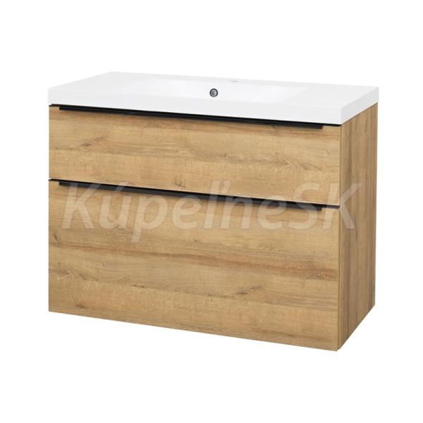 Mereo Mailo, kúpeľňová skrinka s umývadlom z liateho mramoru 101 cm, dub Riviera, čierne m