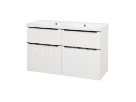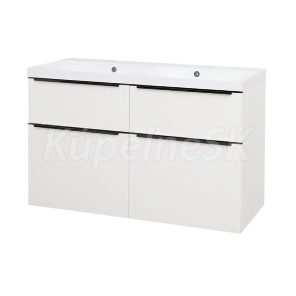 Mailo, kúpeľňová skrinka s umývadlom z liateho mramoru, 1210x750x476 mm, spodná, biela lesk, 4 zásuvky, čierne madlo.