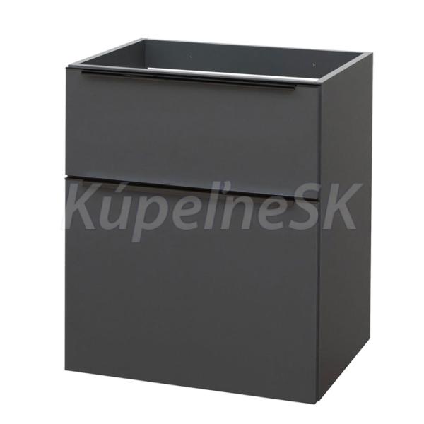 Mailo, kúpeľňová skrinka 605x700x476 mm, spodná, antracit, 2 zásuvky, čierne madlo. Možno kombinovať s umývadlom, popr. s kúpeľňovou doskou na skrinku.