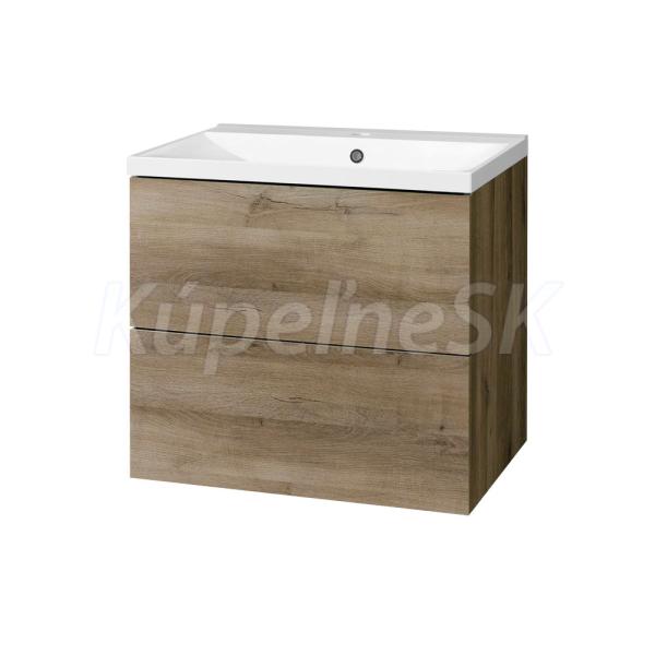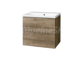 Aira, kúpeľňová skrinka s umývadlom z liateho mramoru 610x578x465 mm, spodná, dub Halifax, 2 zásuvky, push-open systém a pomalé dovieranie.