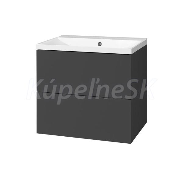 Aira, kúpeľňová skrinka s umývadlom z liateho mramoru 610x578x465 mm, spodná, antracit, 2 zásuvky, push-open systém a pomalé dovieranie.